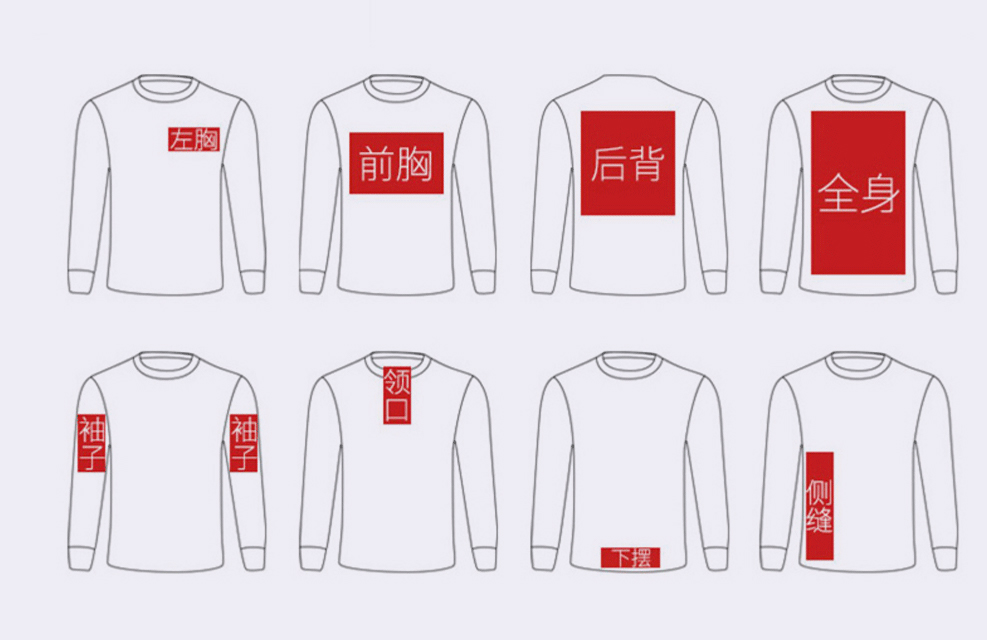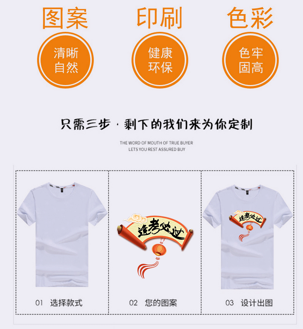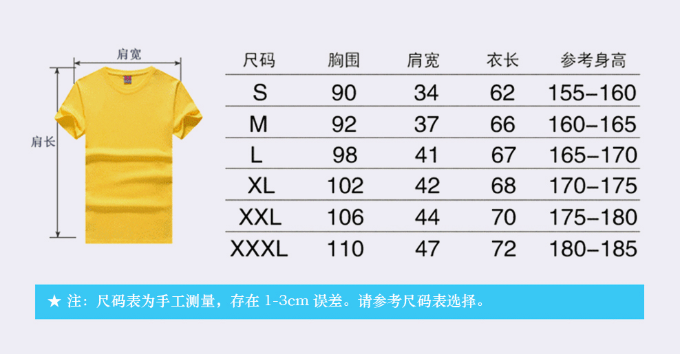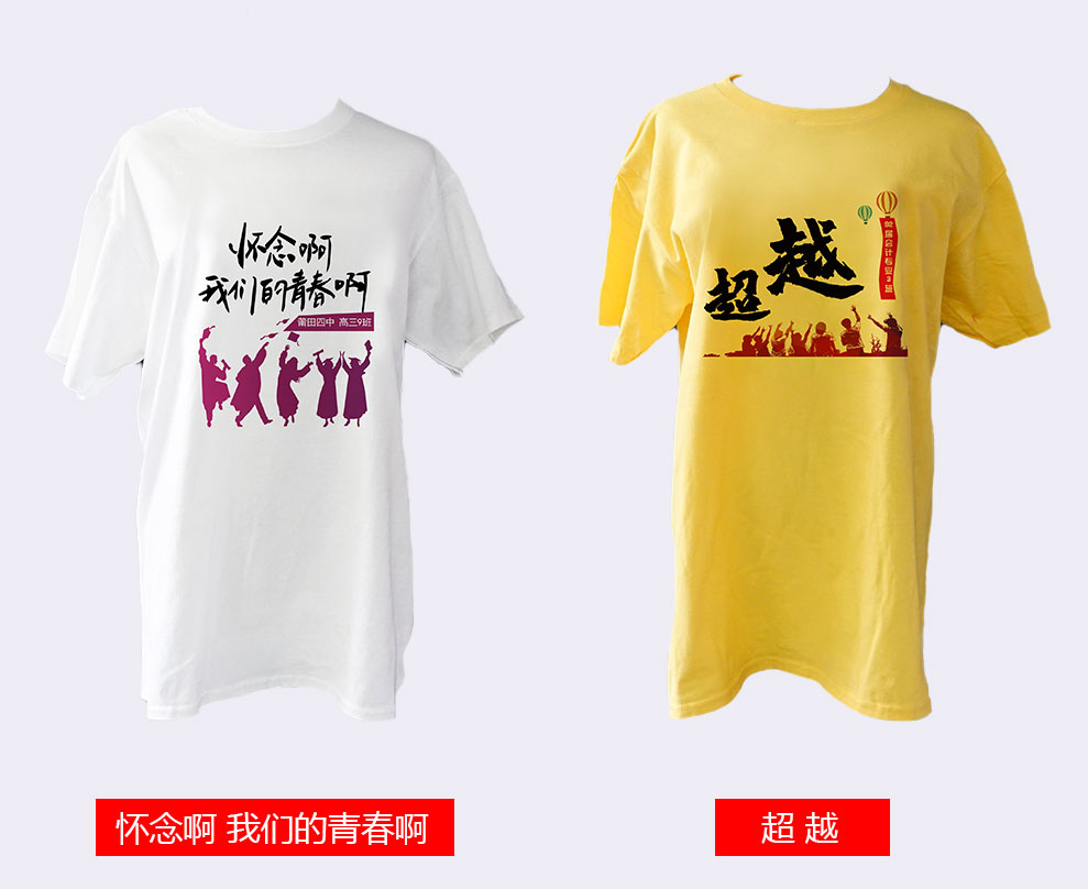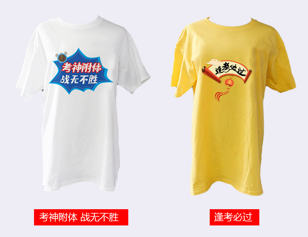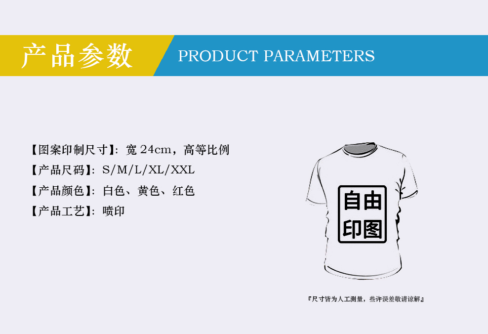 印制图案尺寸:宽24cm高等比例 衣服号码:S/M/L/XL/XXL 颜色:白色 黄色 红色 工艺:喷印